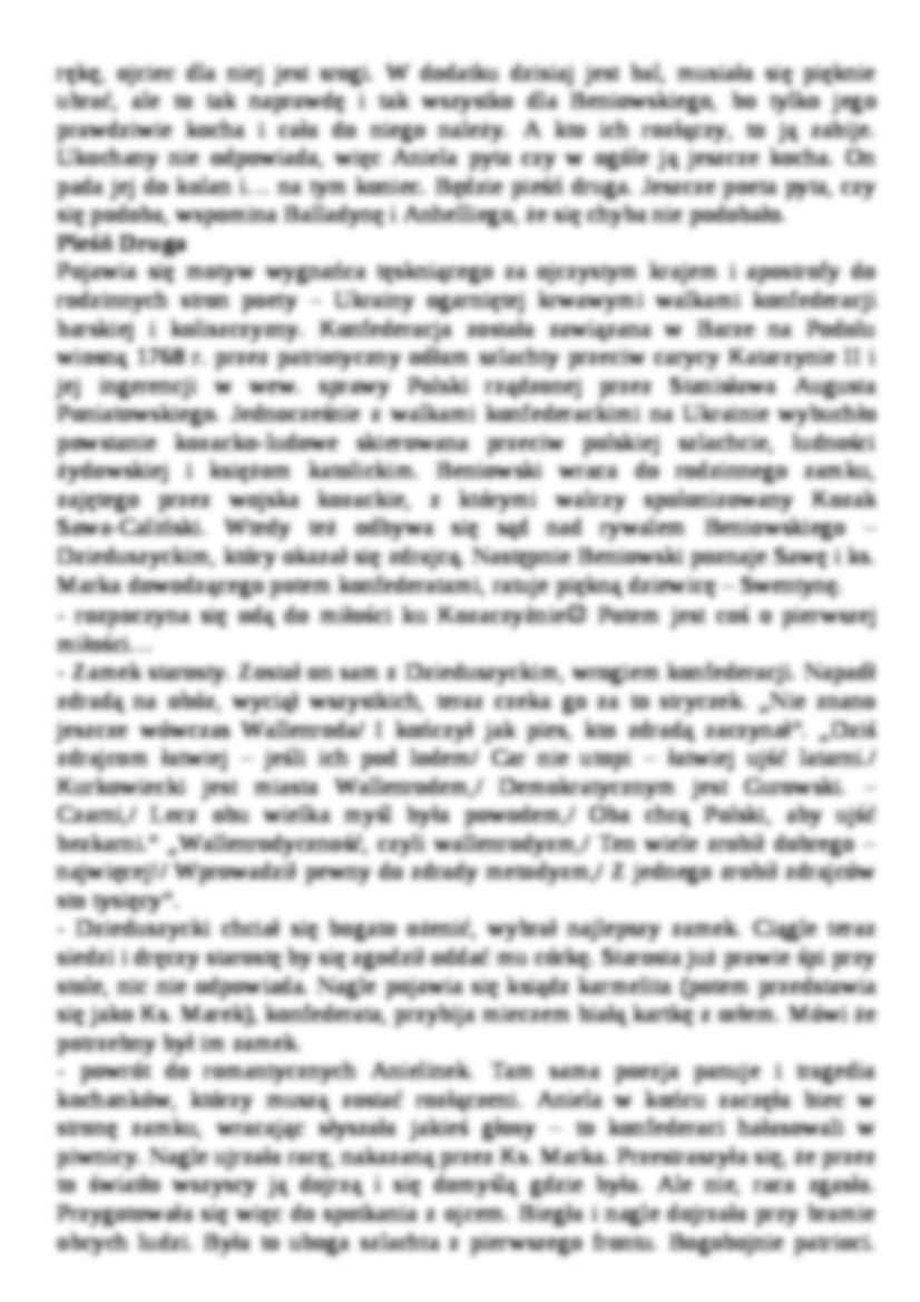 … Krakowie, ale nie odegrał żadnej roli, następnie został zesłany do Kazania, uciekł, został pojmany w Petersburgu, zesłany na Kamczatkę, uciekł, miał przygody w Europie, Ameryce, na Madagaskarze Bohater poematu Sł. nie ma nic wspólnego z M. Beniowskim poza nazwiskiem i żyłką awanturniczą. Był rycerzem sprawy niezwyciężonej, a jednak skazanej na klęskę. Po napisaniu V pieśni i wydaniu tomu Sł. zaczął pisać…