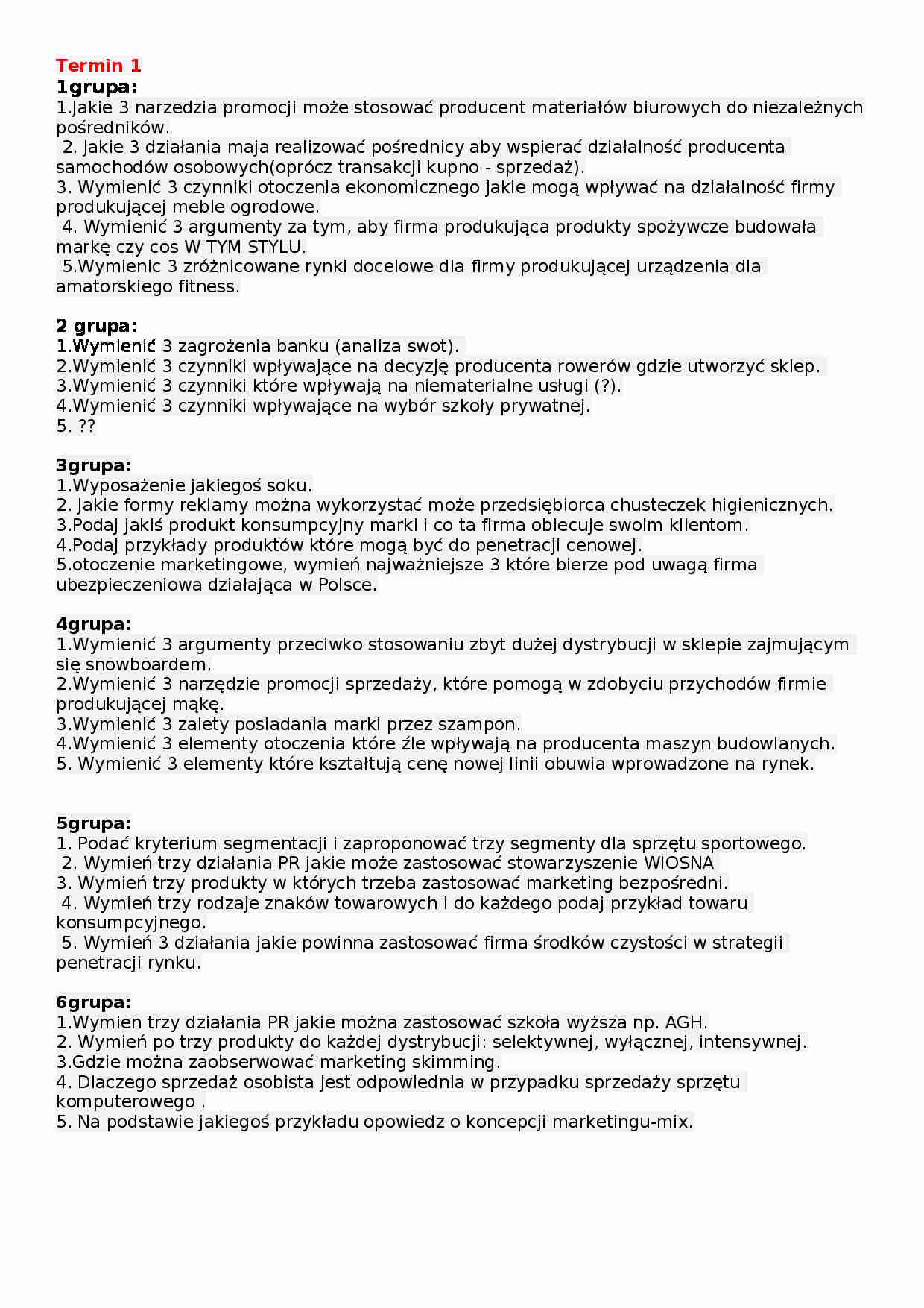 Termin 1 1grupa: 1.Jakie 3 narzedzia promocji może stosować producent materiałów biurowych do niezależnych pośredników.
