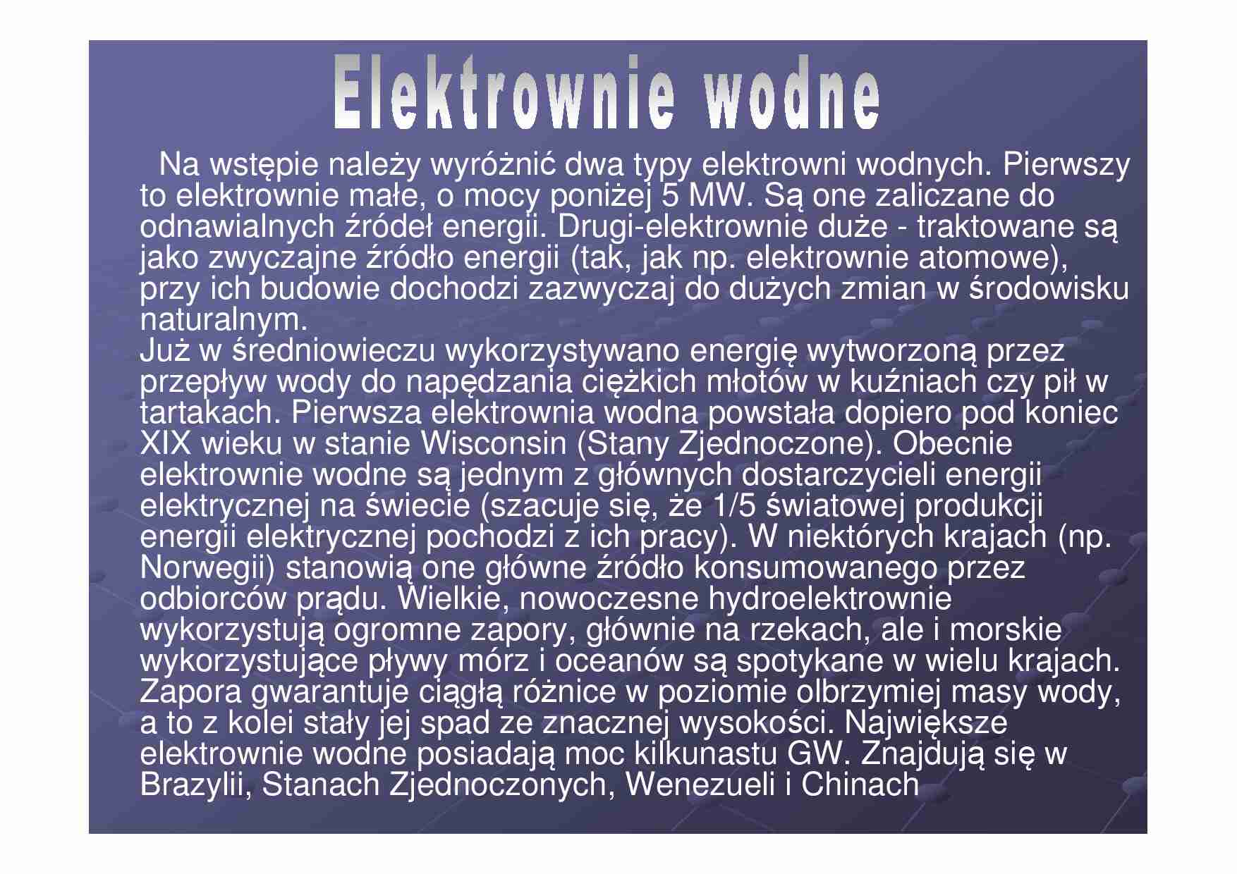 elektrownie wodne są jednym z głównych dostarczycieli energii