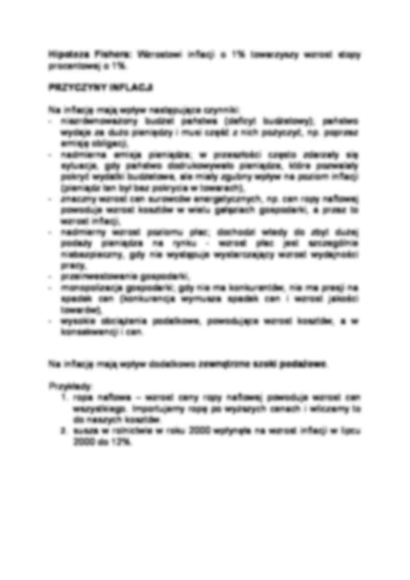 Stagflacja: Okres współwystępowania wysokiej inflacji i wysokiego bezrobocia. Slumpflacja: Wzrost ogólnego poziomu cen i spadek PKB. Indeksacja: Automatyczne dostosowanie wielkości nominalnych do skutków inflacji.