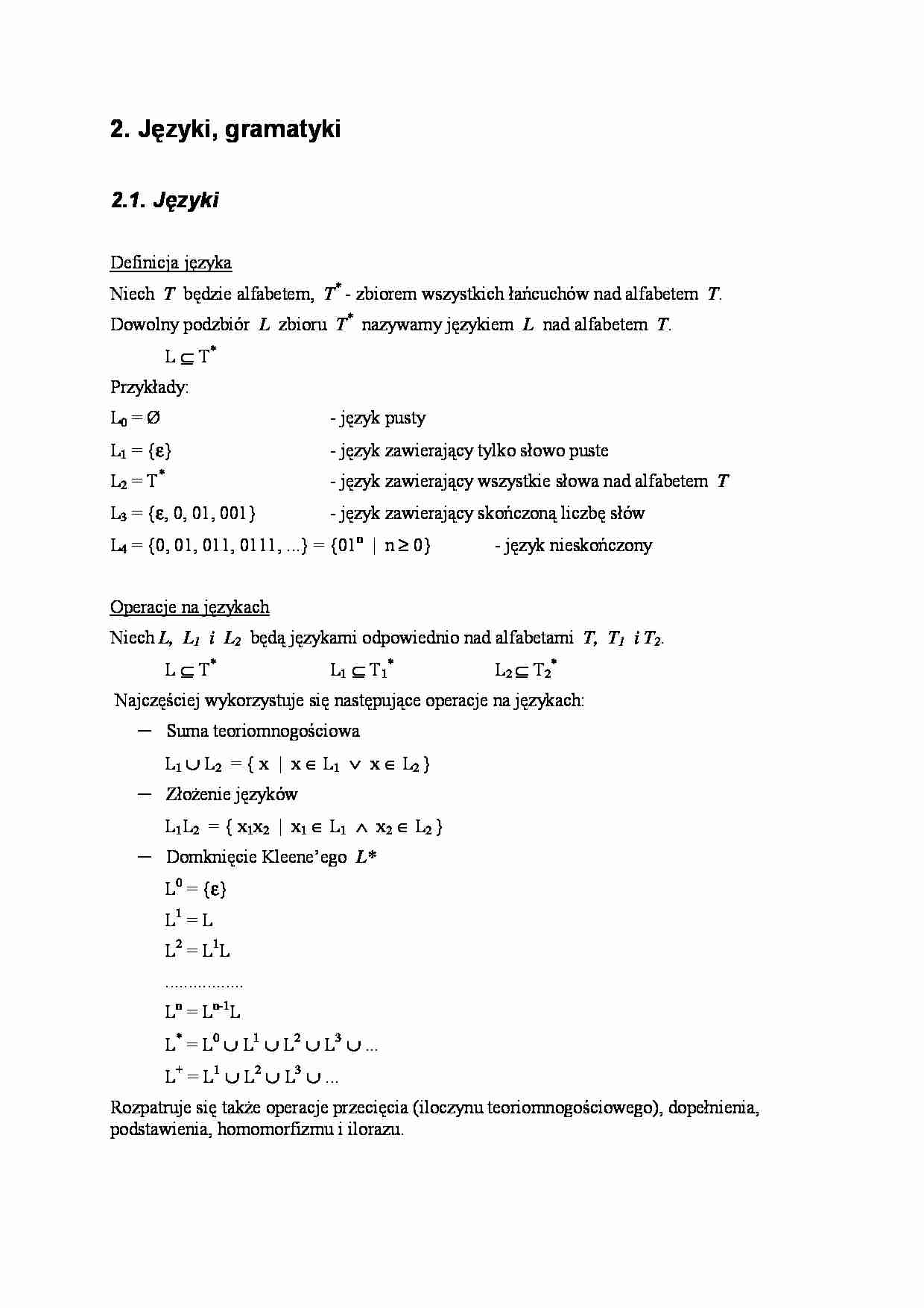 Dowolny podzbiór L zbioru T* nazywamy językiem L nad alfabetem T.