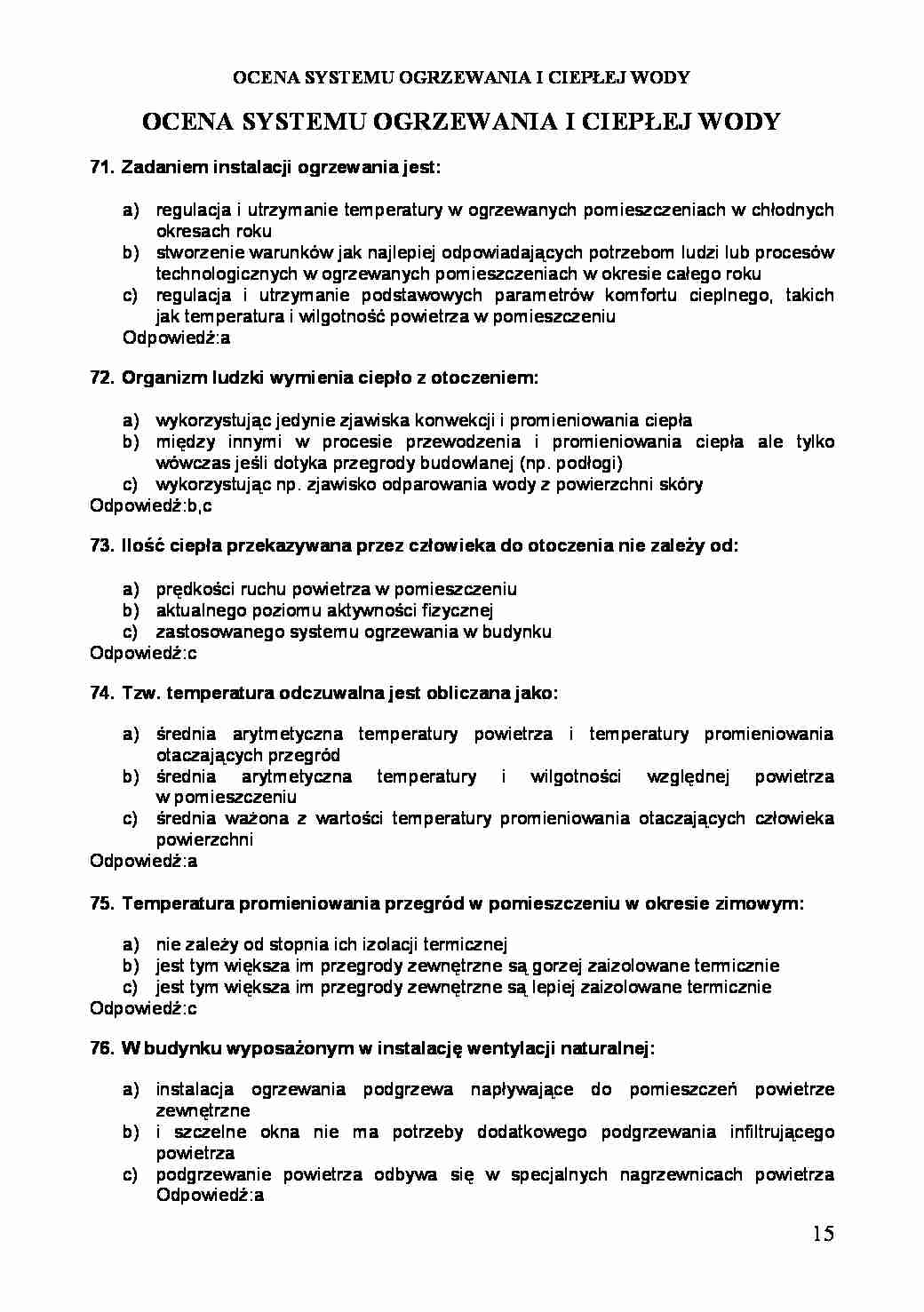 OCENA SYSTEMU OGRZEWANIA I CIEPŁEJ WODY