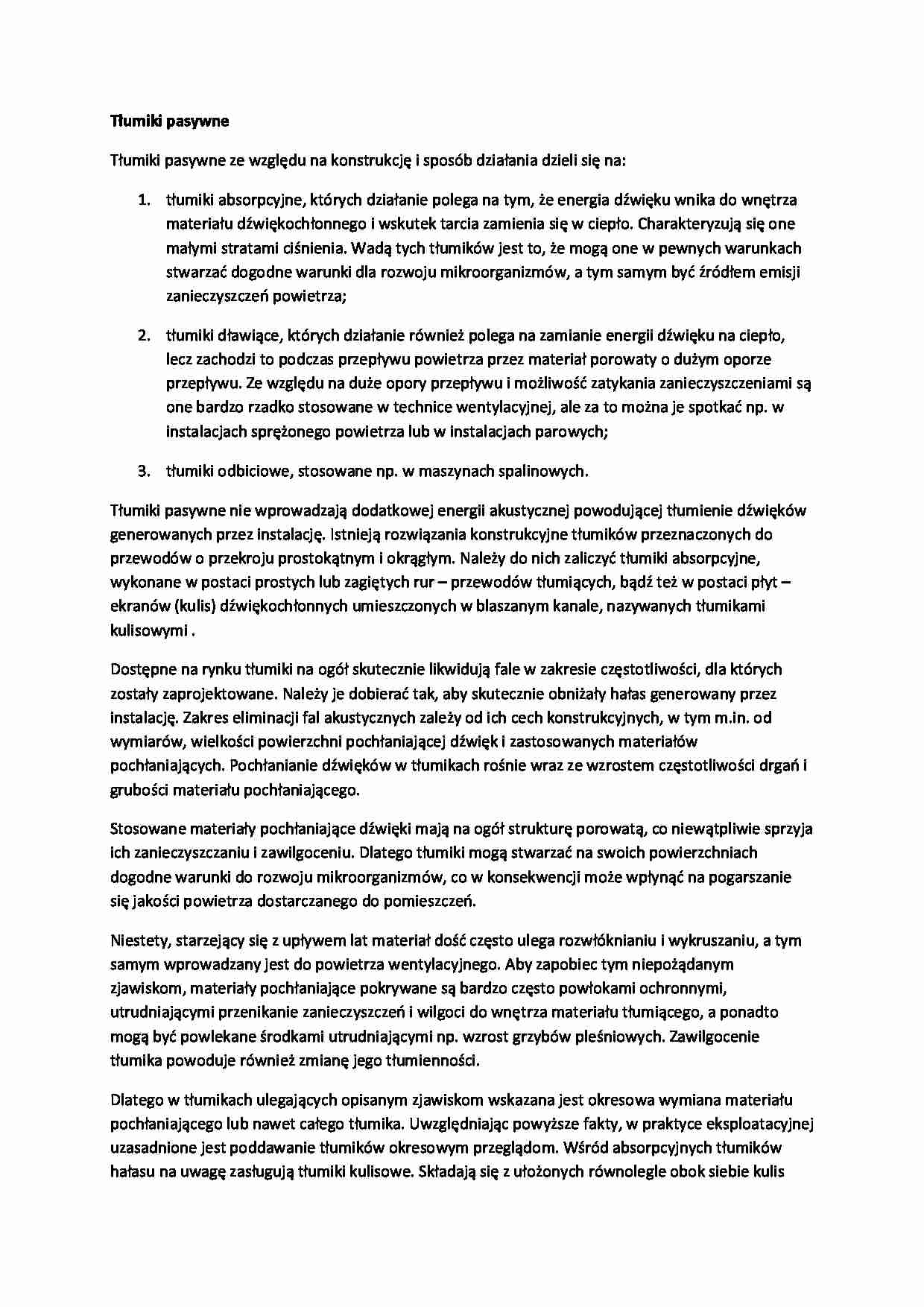 tłumiki dławiące, których działanie również polega na zamianie energii dźwięku na ciepło, lecz zachodzi to podczas przepływu powietrza przez materiał porowaty o dużym oporze przepływu. Ze względu na duże opory przepływu i możliwość zatykania zanieczyszczeniami są one bardzo rzadko stosowane w technice wentylacyjnej…