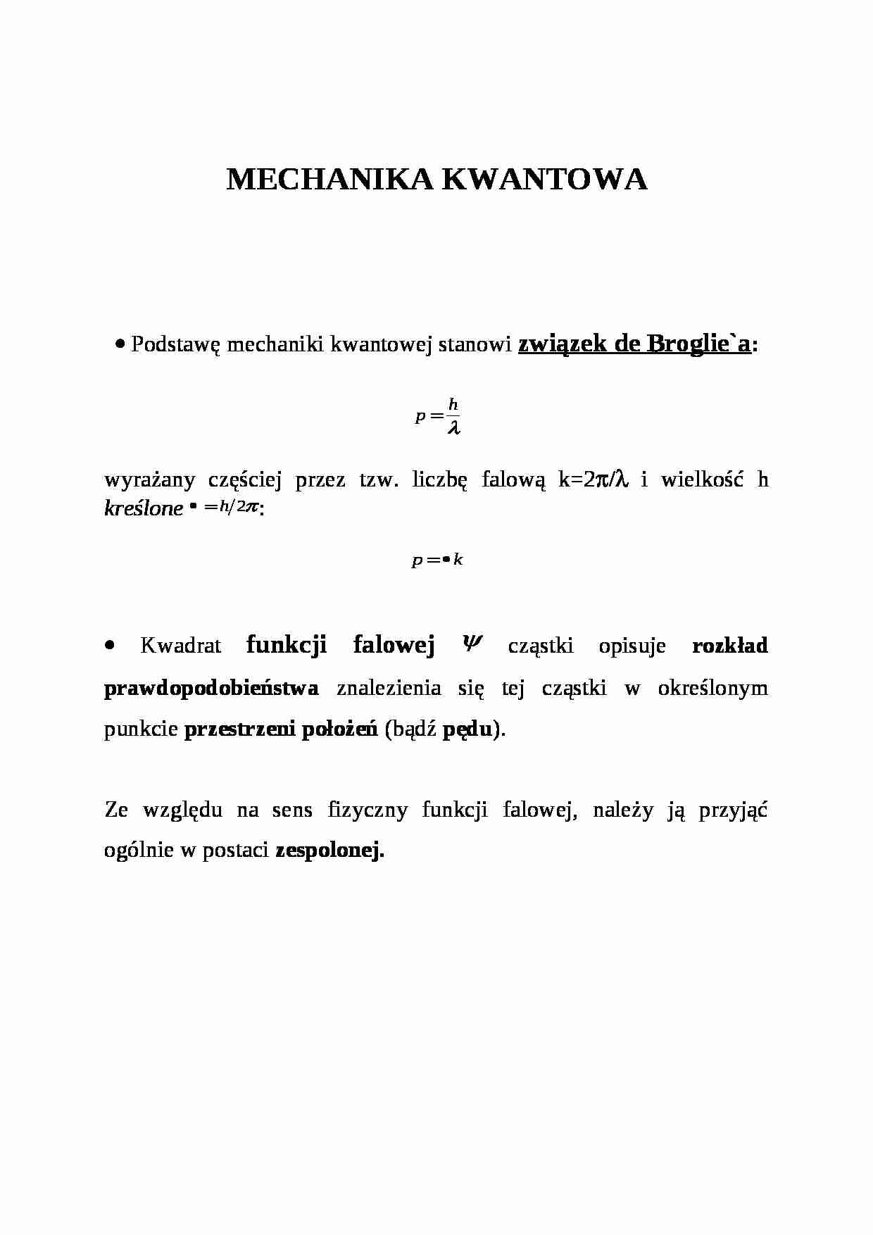 • Podstawę mechaniki kwantowej stanowi związek de Broglie`a: